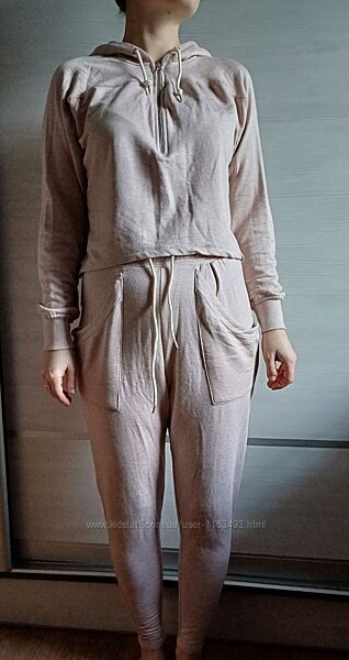 Спортивный женский костюм фирмы H&M.Цвет телесный. Производство Турция.Штаны внизу на молния,вверх на шнурки.Полуобхват по резинке-33см,полуобхват бедер-48см,длина-90см.