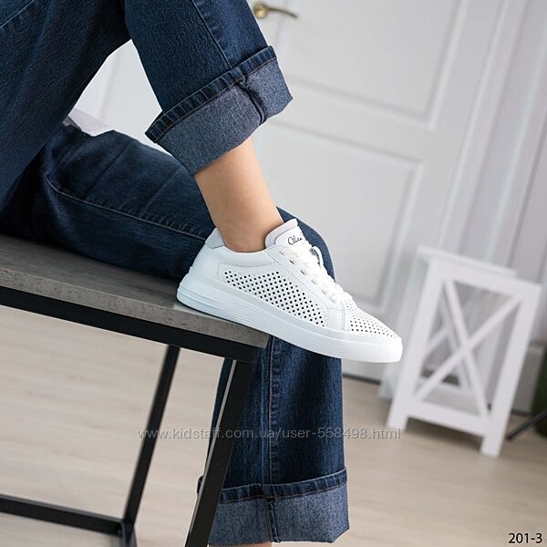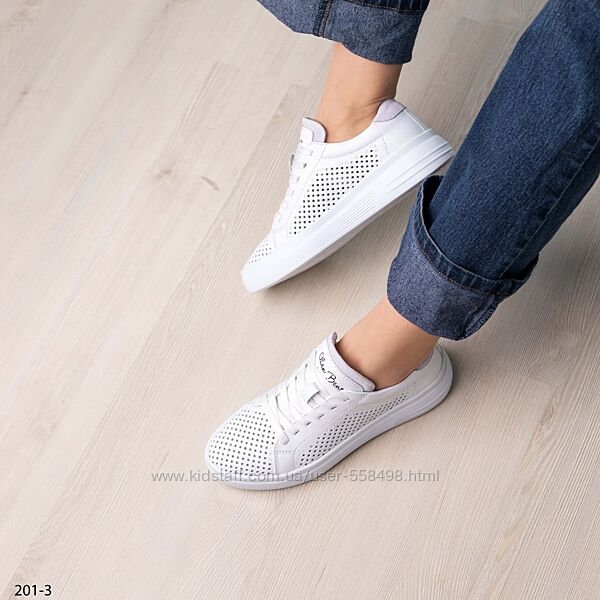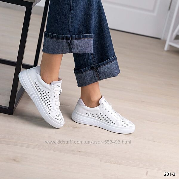 Подробное описание: Шкіряні жіночі білі кеди перфорація