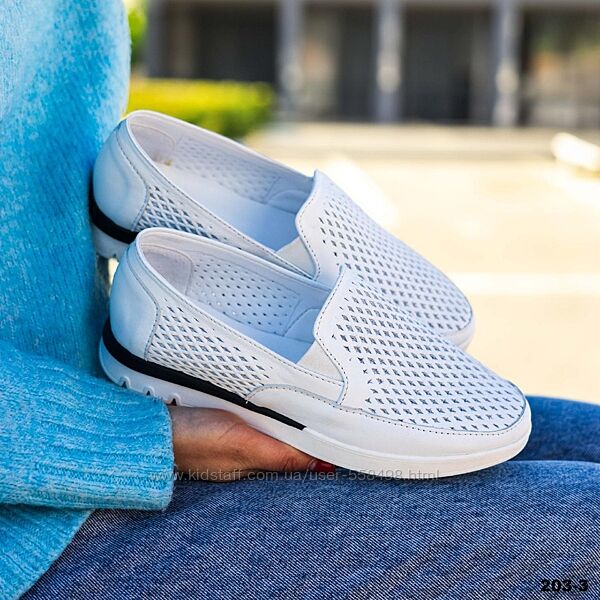 Подробное описание: Жіночі шкіряні білі мокасини на літо