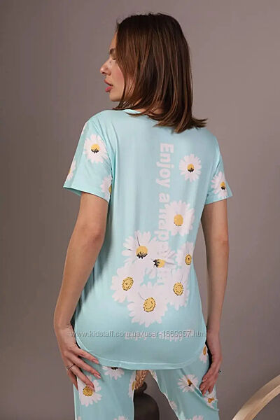 Подробное описание: Пижама женская мятная футболка и брюки п868
