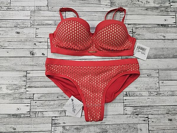 Купальний костюм, що складається з бюстгальтеру балконет та плавок бразиліана. Комбінація з фактурної біеластичної сітки і гладенької мікрофібри на фоні підкладки натурального кольору створює ефект “прозорості”.Бюстгальтер балконет з мікрофібри та сітки із горизонтальною лінією декольте для жінок з невеликим і середнім розміром грудей: