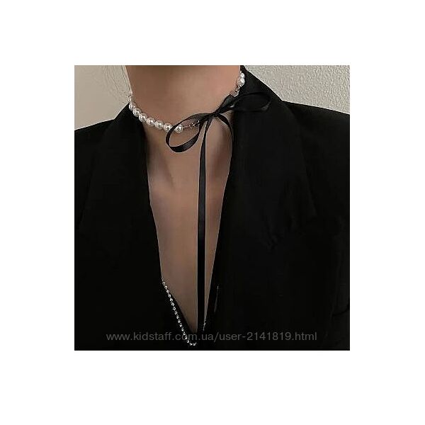 Очаровательный стильный чокер на шею из жемчуга с завязками добавит женственности и изящества любому образу.Уникальный чокер из искусственного жемчуга, длиной 38 см и 2 ленты длиной по 38 см , который притягивает взгляды, словно магнитом. Он воплощает в себе изысканный корейский стиль и привлекает внимание своей элегантной черной лентой, окутывающей вашу шею с изяществом.