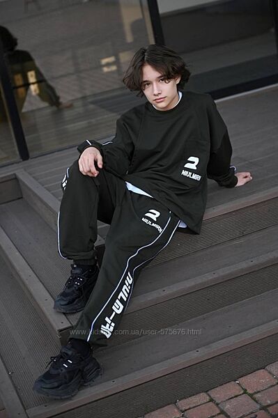 Тканина - турецька двонитка не линяє, не скочується, преміум якості. Стильний світшот з перестрочками. Рукава та штани оздоблені кантами.