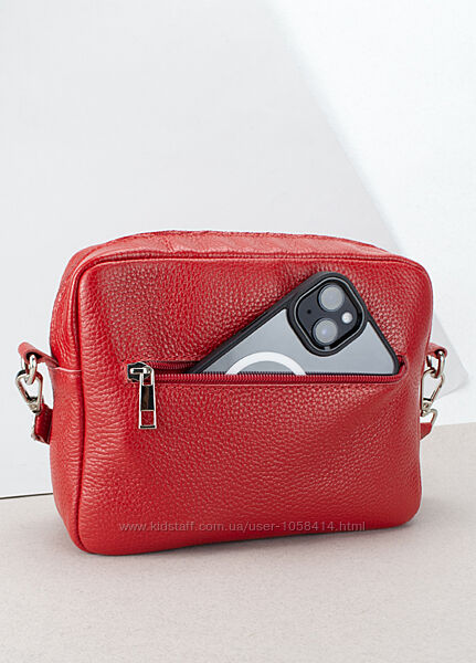 Компактна жіноча сумка виготовлена із високоякісної натуральної шкіри, має міцну металеву блискавку. На лицьовій та зворотній стороні є кишеня на блискавці для зручного доступу до найнеобхідніших предметів. Всередині сумки є прихована кишеня на блискавці та кишеня для телефону.У сумці можна розмістити гаманець середнього чи невеликого розміру, телефон, павербанк, ключі, трохи косметики.