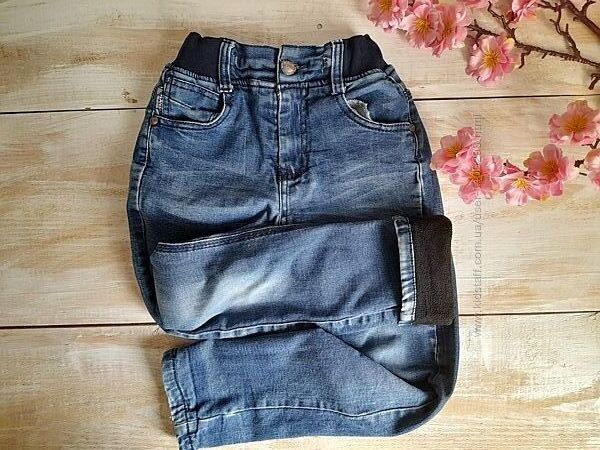 Джинсы утепленные. Размер по бирке 128.По талии широкая резинка