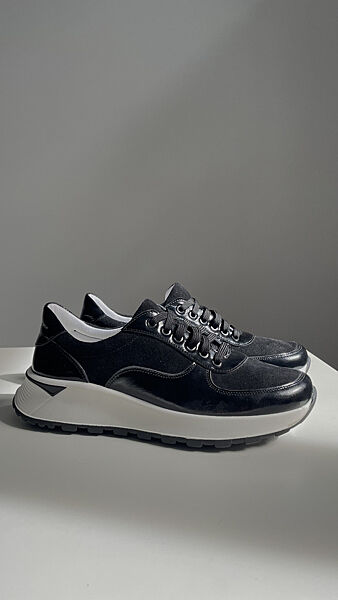 Подробное описание: Кросівки жіночі чорні замша лак товста біла підошва v7-omeg-35ch