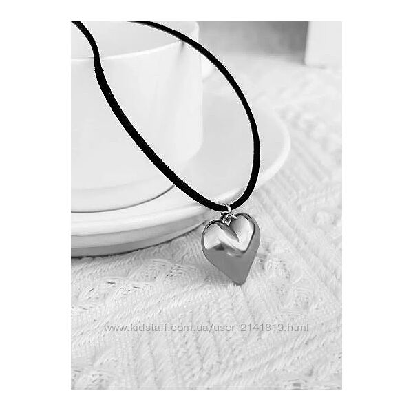 Подробное описание: Трендовый чокер сердце на шнуре, кулон сердечко, серебряное сердце на шнуре