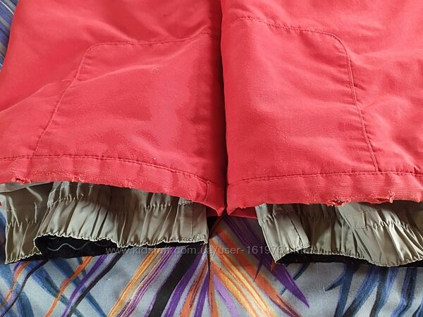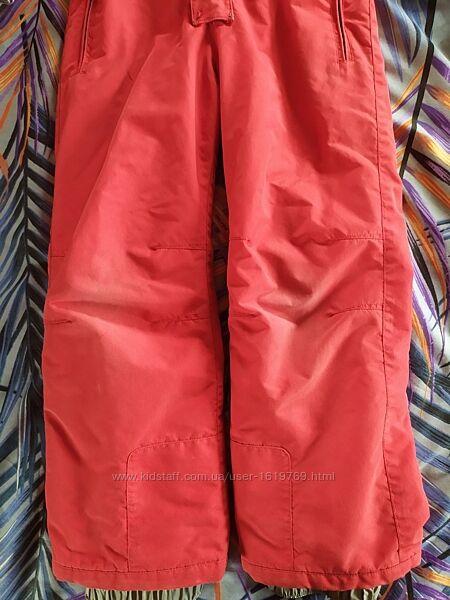 Очень классный лыжный комбез, удобный, не продувается. на 8-9л. немного вытерты коленки и попа, а также потерты штанины внизу сзади (на фото 6)Общая длина 116 см