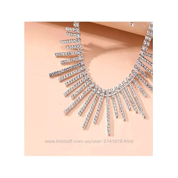 Шикарное вечернее колье со стразами придаст яркости и шарма Вашему образуКолье очень красиво сияет и переливается.