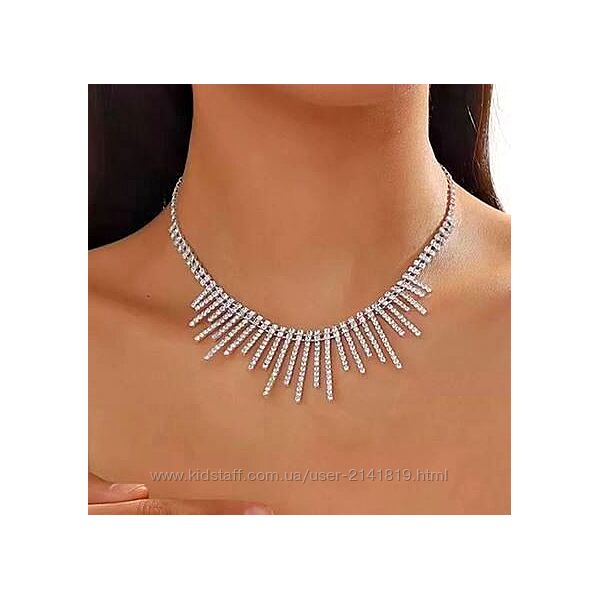 Подробное описание: Блестящее колье стразы, серебристый чокер колье на шею