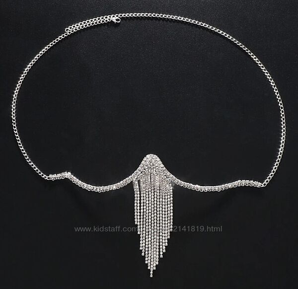 Украшение под грудь, Портупея под грудь с блестящими цепочками стразами