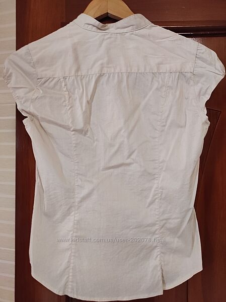 Бежевая блузка з коротким рукавом, длина 56см., длина рукава -9см., ширина между проймами -43см.