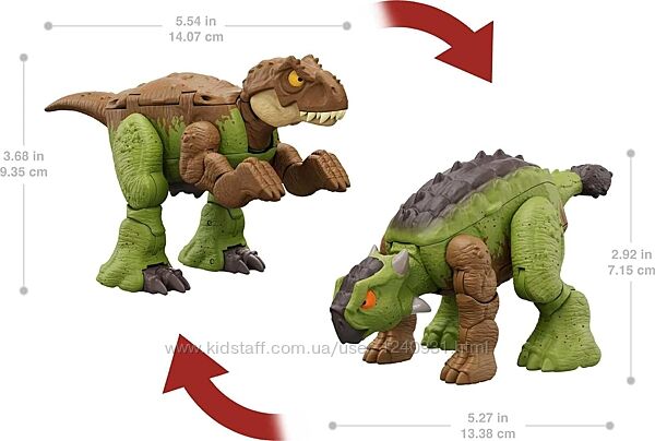 Тиранозавр рекс трансформується з анкілозавром у 2 різних деко: карнотавр зі стегозавром і баріонікс із парасоролофом.