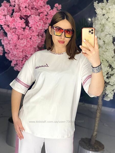 Фото 6-7. Жіночий неймовірно гарний та оригінальний костюм на літо. Тонкий, на літо буде супер. Розміри:56, 58,60. Футболка: довжина:75 см, штани:115 см. Ідеально на високий зріст.