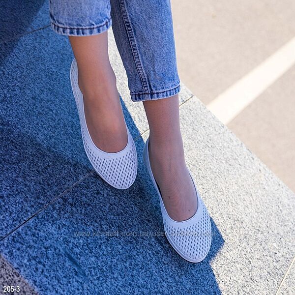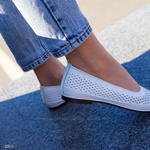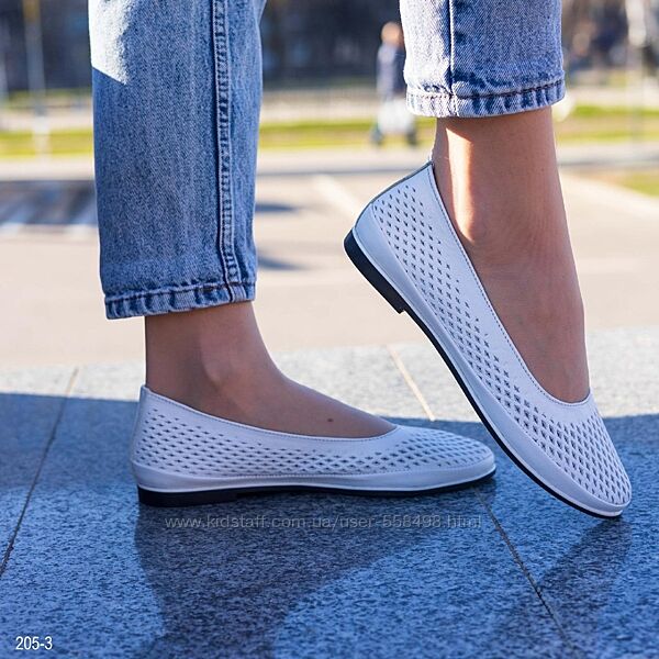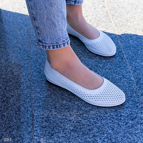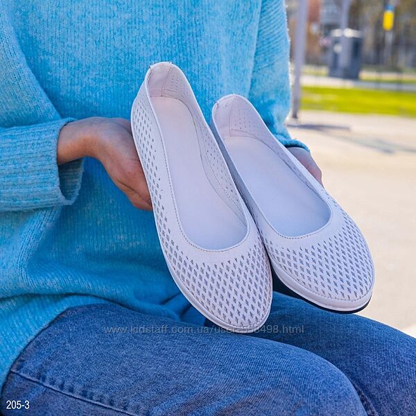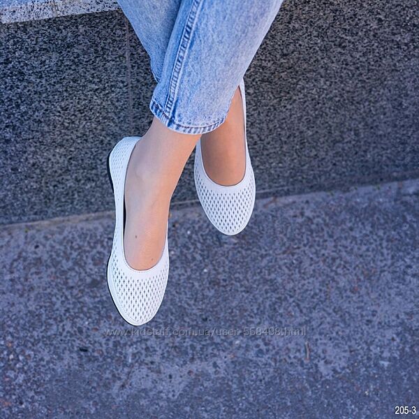Подробное описание: Шкіряні жіночі літні балетки білого кольору