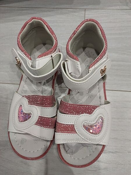 Легенькі зручні босоніжки для дівчинки. Повнота регулюється липучкою. Світиться пятка при хотьбі. Єсупінатор, вустілка шкіра.