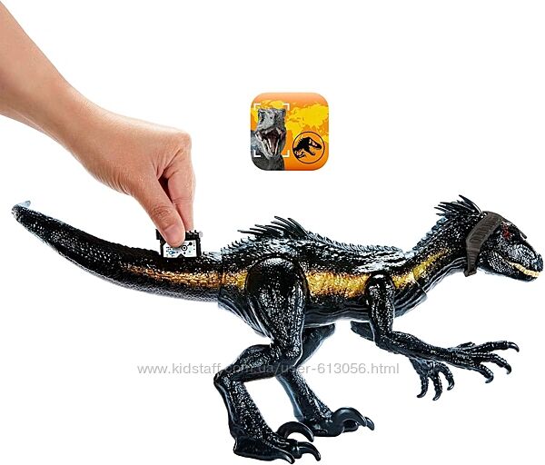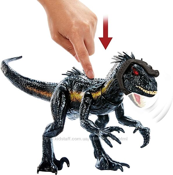 Фигурка Jurassic World Индораптор имеет устрашающий и уникальный внешний вид! У него огромные когти, которыми известен этот гибридный динозавр, и он оформлен в цвете джунглей с переливающимся эффектом. В комплекте съемный головной убор –трекер, помогающий выслеживать добычу.Индораптор имеет три функции атаки, все со световыми и звуковыми эффектами! Потяните любую руку вверх, чтобы голова динозавра повернулась в другую сторону, и отпустите руку, чтобы нанести удар! Эти атаки с левой и правой стороны вызывают ревущие звуки и заставляют красные глаза светиться! Нажмите кнопку на спине фигурки, чтобы активировать еще одну атаку.