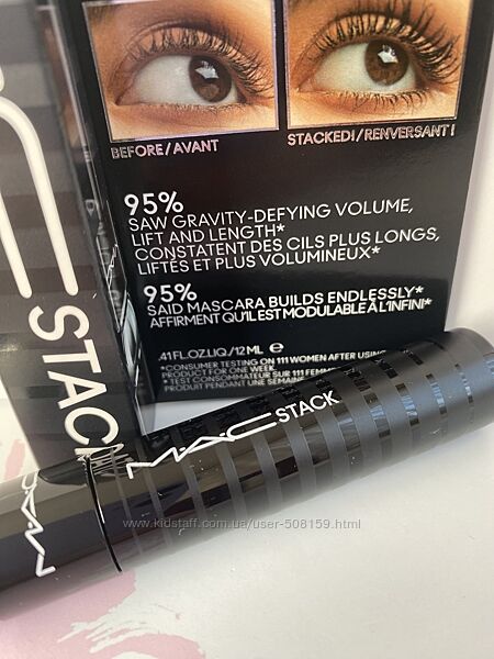 MAC Stack Mascara Mega Brush — чорна туш нового покоління. Вона подовжує та збільшує об’єм вій. Ніжна кремова консистенція дає змогу легко розподіляти її по віях, уникаючи грудочок і склеювання. Завдяки особливій формі щіточки Superstack Mega Brush туш ретельно фарбує вії та підкручує їх. Вона ідеально підходить для верхніх вій.
