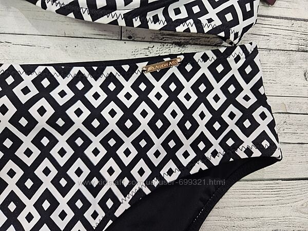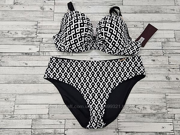 Роздільний купальник з латексної чашкою і класичними закритими плавкими із середньою висотою боків та середньою лінією талії,латексні чашки підтримують, округлюють, груди та створюють ефект пружних грудей,