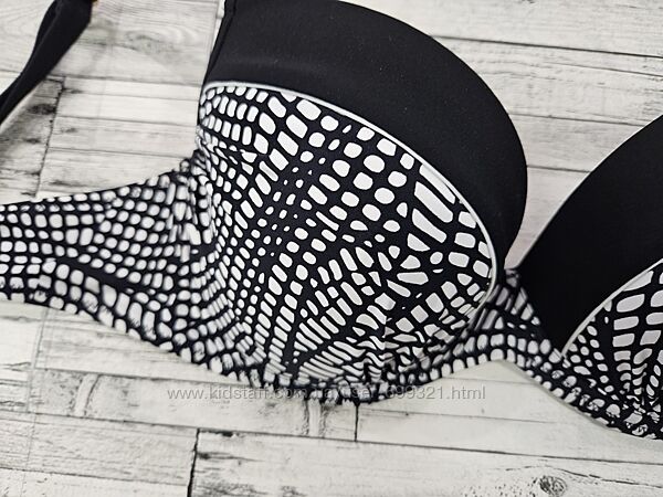 Роздільний купальник з латексної чашкою і класичними закритими плавкими із середньою висотою боків та середньою лінією талії,латексні чашки підтримують, округлюють, груди та створюють ефект пружних грудей,