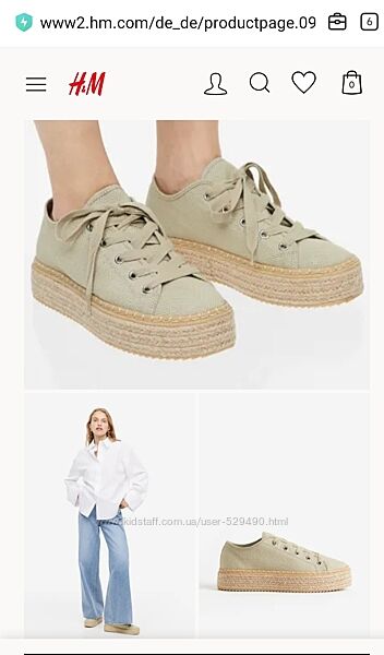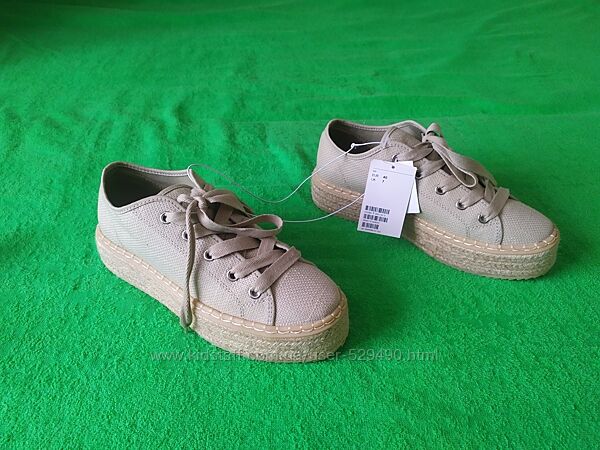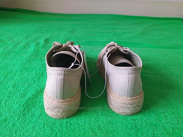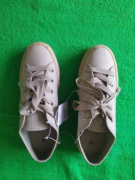Продам свой пролёт, заказывала с иностранного сайта Н&М:- бежево - оливкового цвета тканевые эспадрильи/мокасины/ кеды/кроссовки на платформе отделанной жгутом-рогожкой, указан размер 40 полномерный, на стопу 26 см