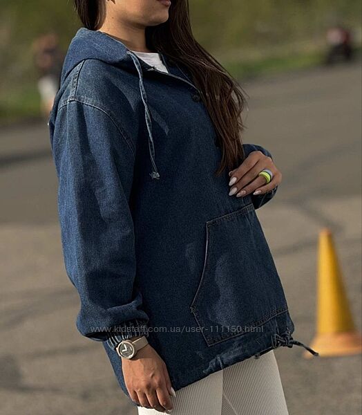 ЖІНОЧА ДЖИНСОВКАОднотонна модель з капюшоном.
