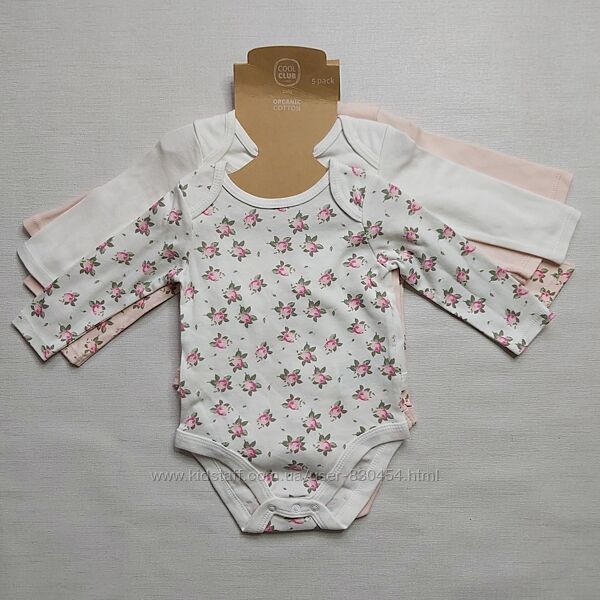 Комплект (набір 5 шт) боді для дівчинки Cool Club. Розмір 68 мм. 100% бавовна. Довгий рукав, кнопки між ніжок, плечіки на запах. Ціна вказана за набір із 5шт.