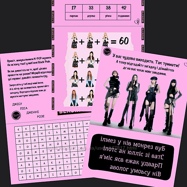 Дитячий квест для гри на природі "Black Pink"Є такий самий квест, але зі схованками для гри вдома.