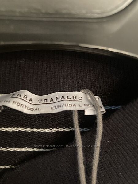 Сукня ZARA TRF, розмір L. Стан нової, не одягалась. Колір- темно-синій у тонку білу смужку. Матеріал 100% бавовна. Заміри: ПО по грудях 52, плечі 40, рукав 21,довжина 80.