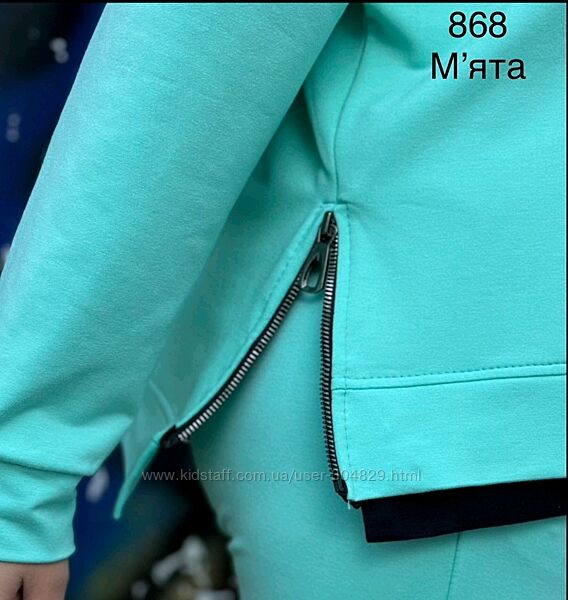 Кофтинка вільного крою , подовжена по спині. По боках кофта на блискавках.Штани з резинкою на талії. Мають кишені.