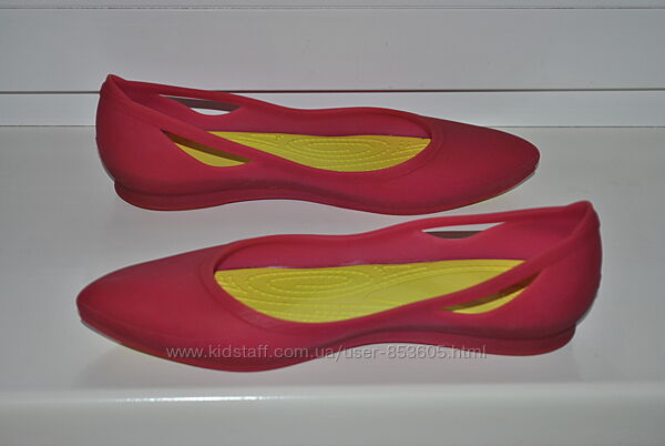Балетки лодочки Crocs р. W 8. Полная длина стельки 25,7. На ножку приблизительно 24,7 см.Инновационный материал Croslite обеспечивает максимальный комфорт. Стелька из материала CrosliteTM адаптируется к анатомическим особенностям стопы и обеспечивает отличную поддержку стопы. Материал Croslite обеспечивает отсутствие неприятного запаха, что делает Crocs прекрасным выбором для повседневной носки.