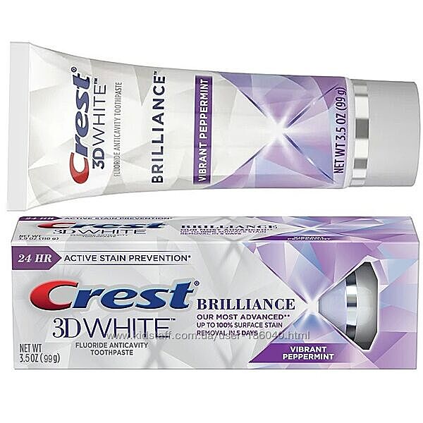 Зубна паста Crest Crest 3D White Brilliance Flouride Anticavity Toothpaste використовують нові мікро-відбілюючі частинки, які м´яко полірують зуби, ефективніше прибирають зубний наліт і подовжують відчуття свіжості.