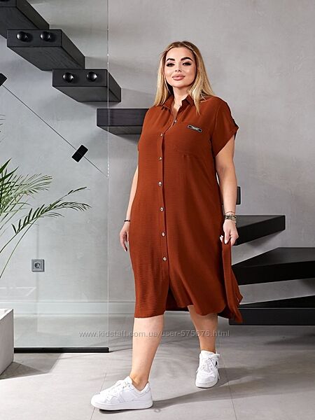 50-52, 54-56 Стильна сукня-сорочка креп жатка