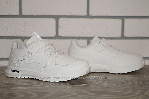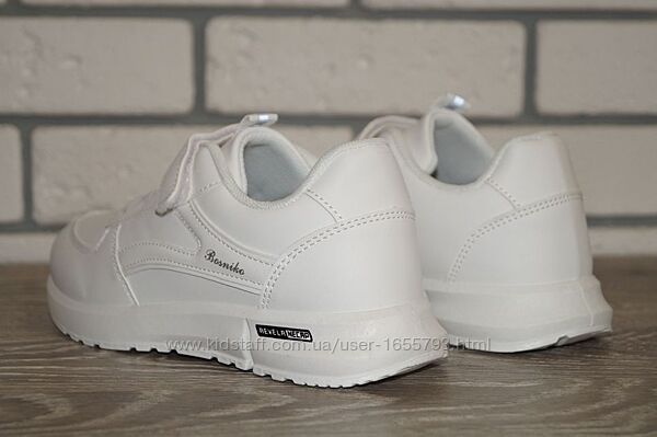 Стильні білі демісезонні кросівки для дівчаток та хлопчиків. Мають відмінну якість та оригінальний дизайн.Пошиті зі штучної шкіри високої якості. Мають м´яку текстильну підкладку. Доповнені шкіряною устілкою та жорстким задником, який добре фіксує стопу. Антиковзна підошва. Максимально легкі та зручні на ніжці.
