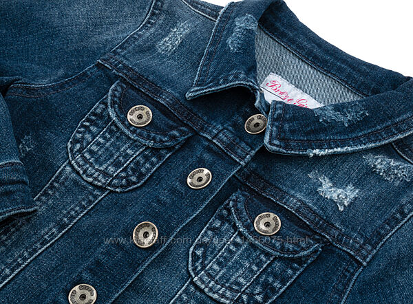 Стильна джинсова курточка на кнопках для дівчинки.Дуже класна, стильна джинсова куртка зі стрейчевого деніму з потертостями та модними декоративними пошкодженнями від турецької фірми Breeze для вашої юної модниці.