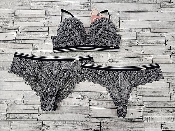 Головна особливість моделі — поєднання непоєднуваного. Вишукане мереживо з кордовою ниткою поєднується зі спортивною резинкою, створюючи грайливий настрій.