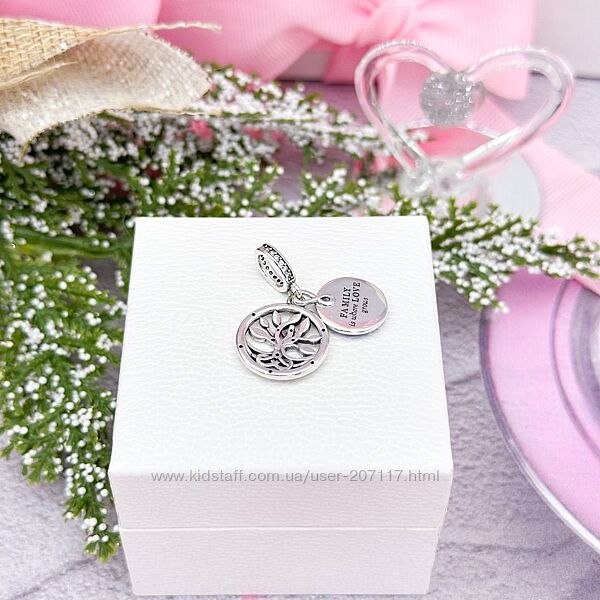 Срібна намистина-підвіска Родина-це місце, де росте любов