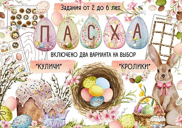 Нежный и весенний проект "Пасха" сразу в двух вариантах. С пасхальными куличами, яйцами, вербой или с пасхальным кроликами, морковками. Вы получаете оба и выбираете тот, который подходит вашей семье.