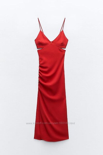 Дуже гарна червона сукня бренду Zara,середньої довжини,з V-подібним вирізом та тонкими бретелями,кільце на грудях та вирізи з боків,драпірована тканина з боку та розріз по краю,прихована блискавка-застібка ззаду,розмір S,склад:97%поліестер,3%еластан.При покупці сукні в подарунок пробник духів Gucci.Другие объявления продавца