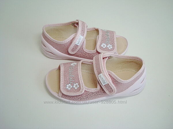 Ніжно-рожеві текстильні босоніжки на світло-рожевій підошві від Waldi (Україна) обов´язково повинні бути присутніми в гардеробі дівчинки.