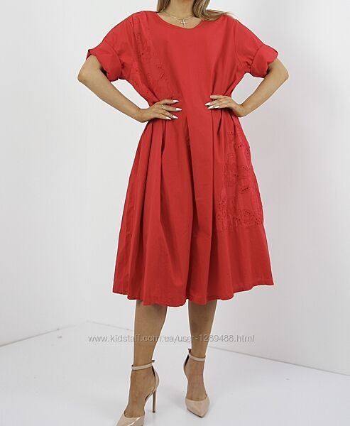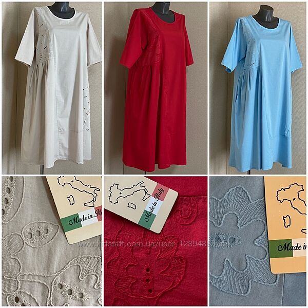Стильное,уютное котоновое платье в стиле бохо,трапеция,с деталями из прошвы,ИталияКрасивая,комфортная,просторная модель этого сезона !Платье идеальной длины миди,за колено,с врезными боковыми карманами, с рукавом по локоть,комфортного трапециевидного кроя и деталями из прошвы.Натуральная,супер-качественная котоновая(хлопковая) ткань,приятная к телу.Эффектные и трендовые цвета этого сезона!