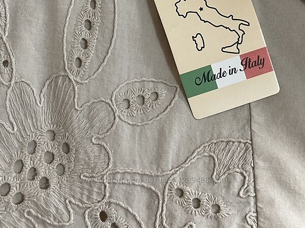 Подробное описание: Стильное, уютное котоновое платье трапеция, с деталями из прошвы, Италия