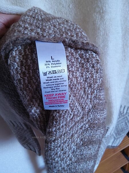 Мягкий і приємний до тіла жіночий светрик в розмірі L. Можна і на М, буде як оверсайз. Дуже гарний тепло-молочний колір основної нитки з візерунком у брунатному колорі. Заміри:Довжина виробу 67 см, ширина 67,5 см, довжина рукава 60 см, ширина манжета 13 см, довжина від плеча до плеча 47 см. Склад светру знайдете на фото.)овий, дуже гарний і приємний до тіла жіночий светрик в розмірі L. Можна і на М, буде як оверсайз. Дуже гарний тепло-молочний колір основної нитки з візерунком у брунатному колорі. Заміри: