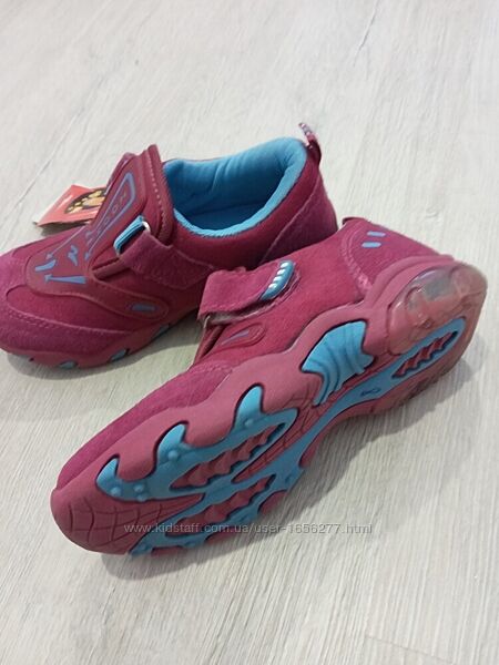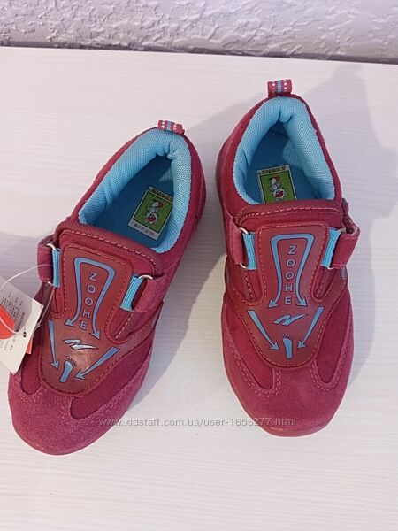 Демисезонные детские кроссовки хорошего качества. Производитель Zoohe, Китай ( качественный Китай). Удобные, лёгкие, аккуратные, тёплые внутри (весна, осень), застёжка липучка с внешнй стороны.Цвет больше малиново-фиолетовый или фиолетовый яркий, не ядовитый. Цвет красивый, камера его точно не передаёт. Цвет подклады и стельки передан точно.