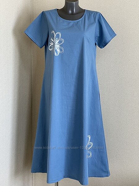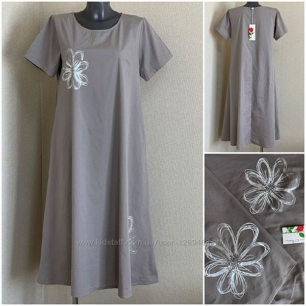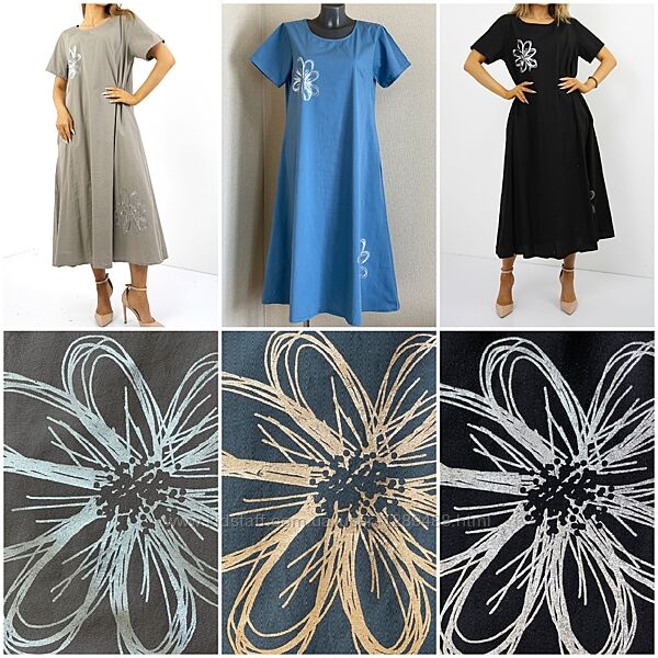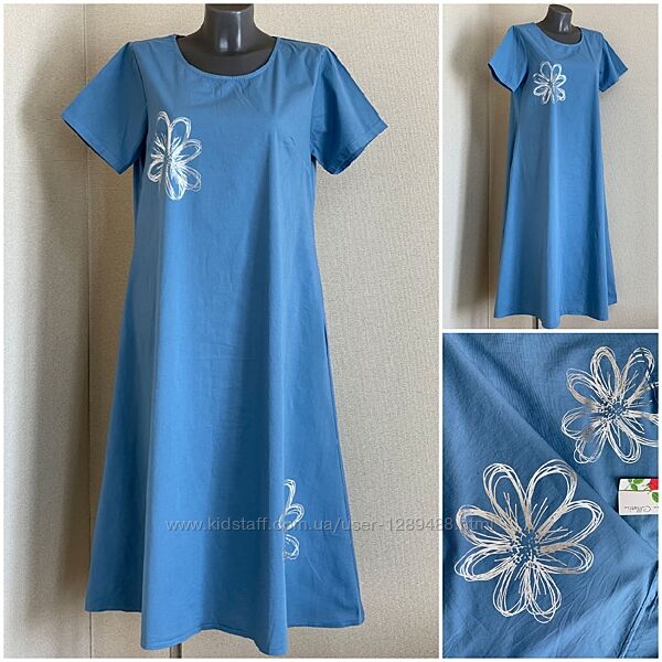 Красивое,элегантное,мега качественное котоновое платье,А-силуэта,трапеция,ИталияЗаметная,стильная и комфортная модель этого сезона платья идеальной длины,А-силуэта!Платье с коротким рукавом,комфортного трапециевидного кроя,А-силуэта,с врезными боковыми карманами.и эффектным серебристым рисунком.Натуральная,супер-качественная котоновая(хлопковая) ткань.Эффектные и трендовые цвета этого сезона!
