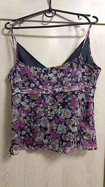 Шовковий топ, майка, блуза від Dream розмір xs-s, us 36 стан нового на підкладці збоку змійка Довжина -49, пог- 41, під грудьми - 37, ширина по низу - 43. відправлю НП та УП по предоплаті без повернення