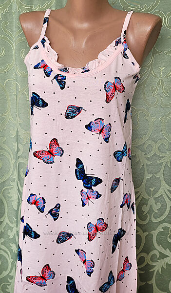 Подробное описание: Женская ночная сорочка, трикотажная ночнушка на бретельках. Хлопок. 46-56 р