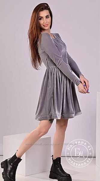 ❤ ШИКАРНА ВЕЛЮРОВА СУКНЯ ❤Модна велюрова сукня відмінної якості. Дуже приємний до тіла матеріал - плотний велюр бездоганної якості. Завжди актуальний фасон - приталений силует з спідничною клеш та трішки завишеною талією. Такий фасон чудово приховає певні недоліки фігури та зробить силует надзичайно жіночним. Ідеально сідає на будь-яку фігуру. Шикарний відтінок ніжно-сірого велюру. Виглядає бездоганно! Поспішайте, кількість обмежена!