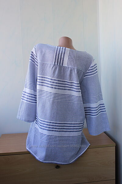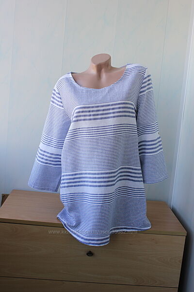 Блуза льняна в смужку lina tomei, Італія пог - 54, поб - 58, довжина по середині спинки - 71, довжина рукава - 47 см. Тканина не кусається,немає паперової бирки, нова, в ціні враховано,