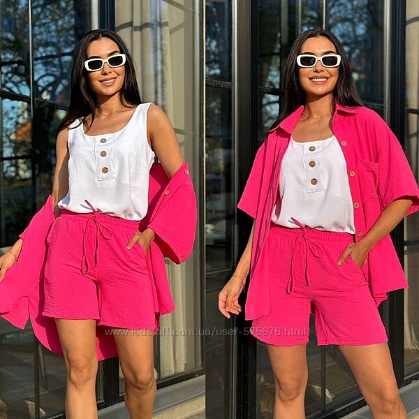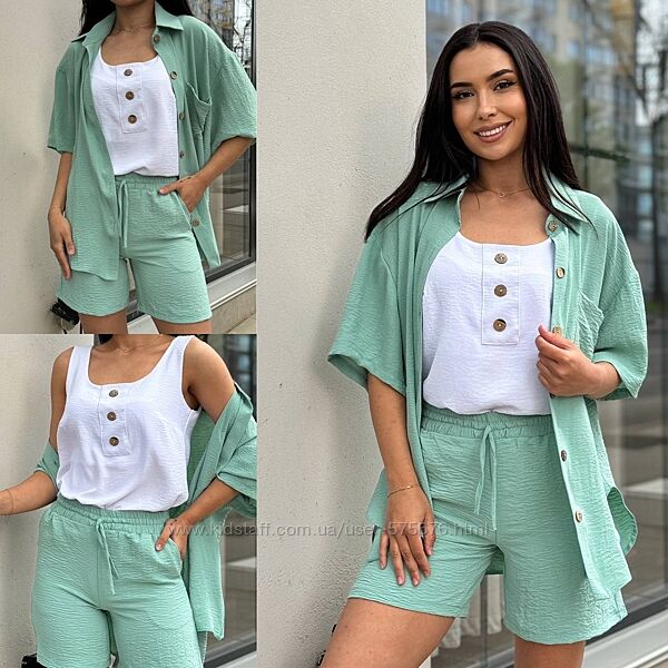 Костюм трійка сорочка, маєчка та шорти американський креп жаткаЦіна 780грн